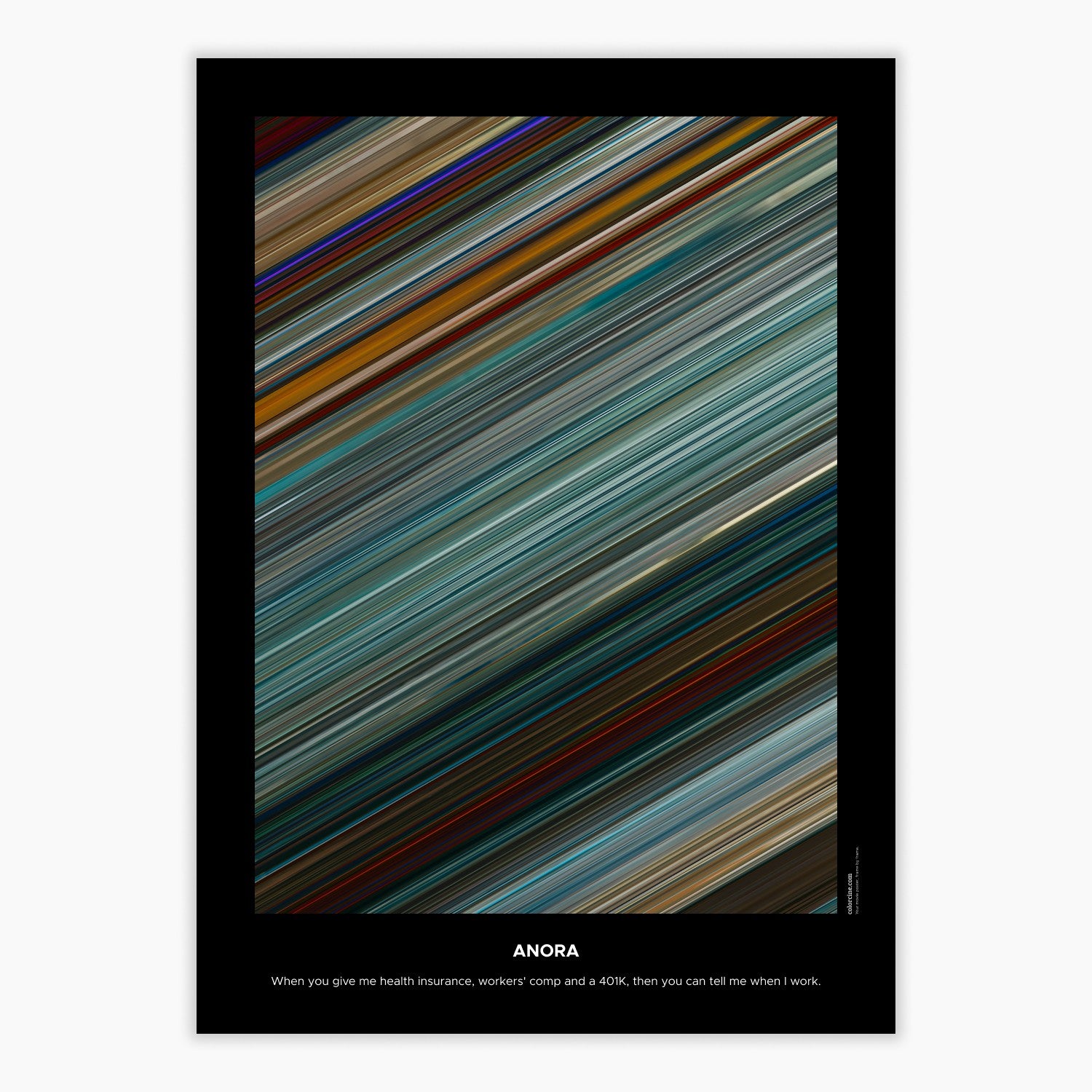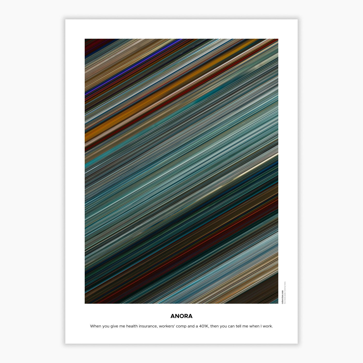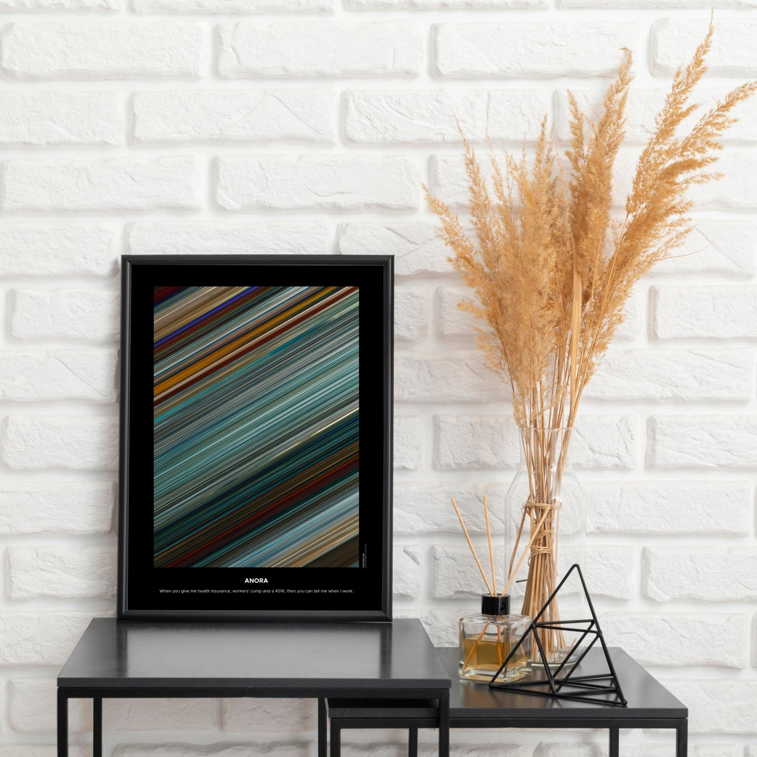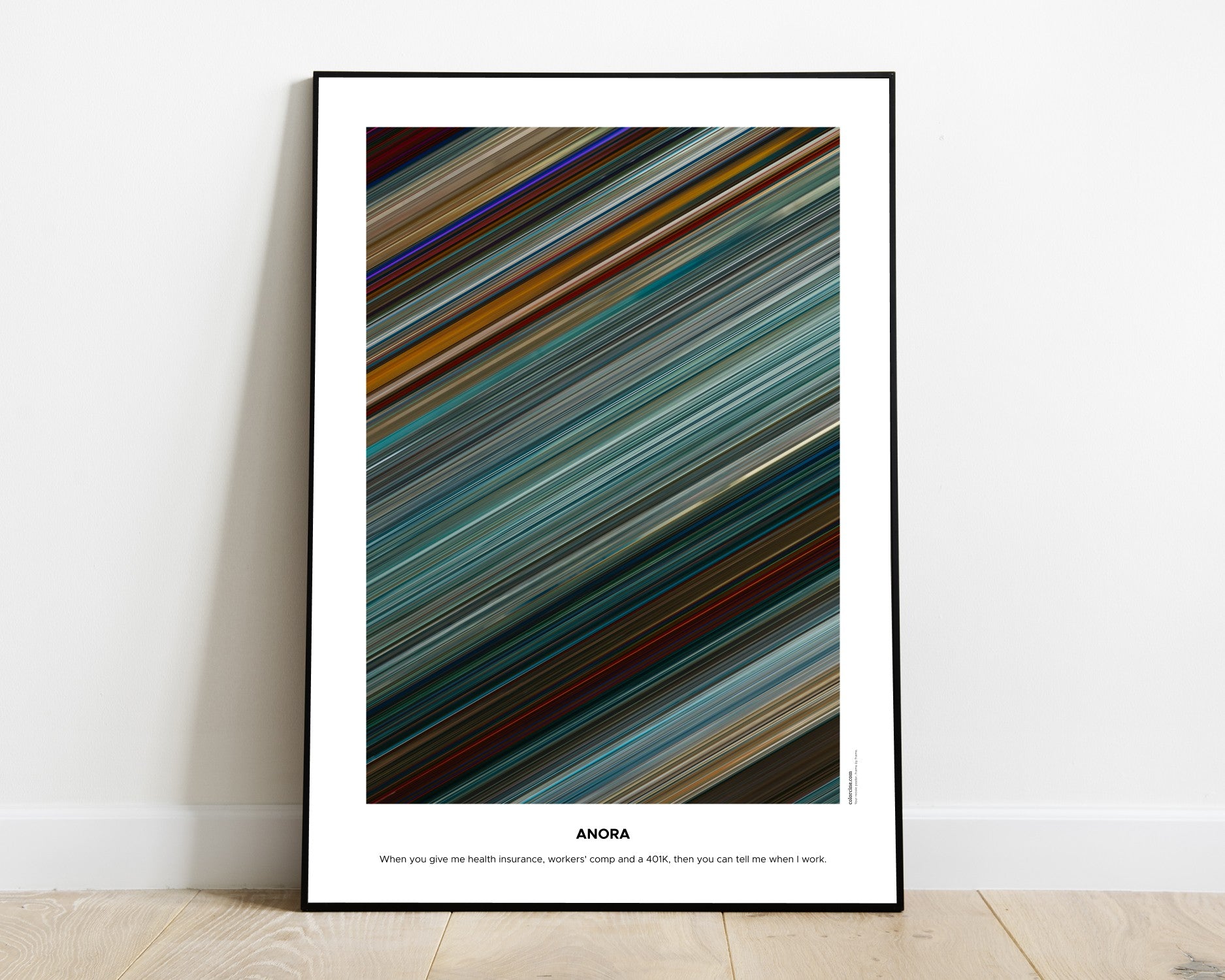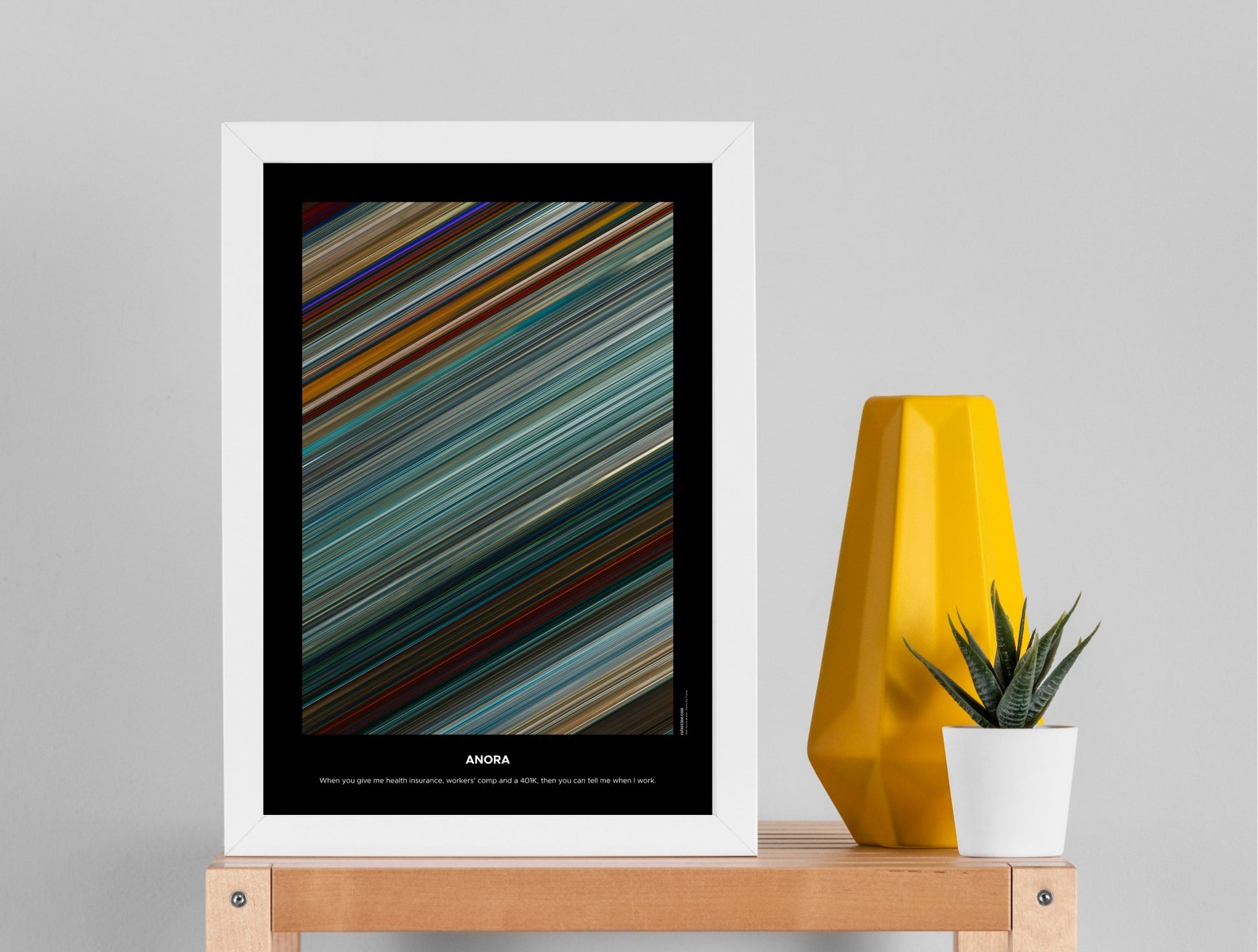 Decorate your wall with this beautiful poster. Each line represents a frame of the movie or TV series episode. It's a colorful and memorable way to immortalize your favorite films or TV series.