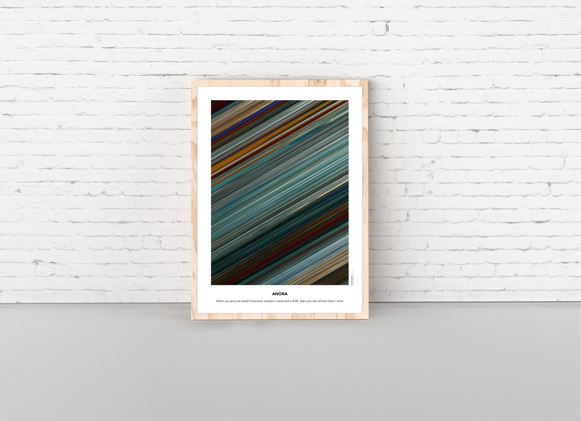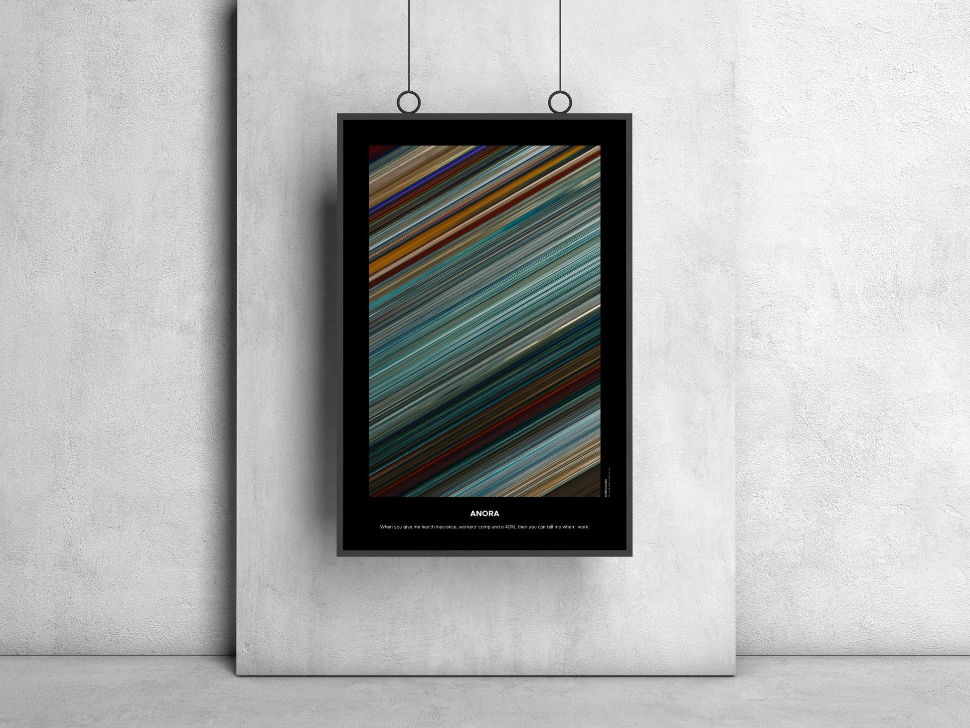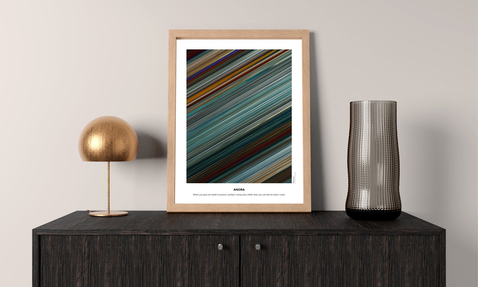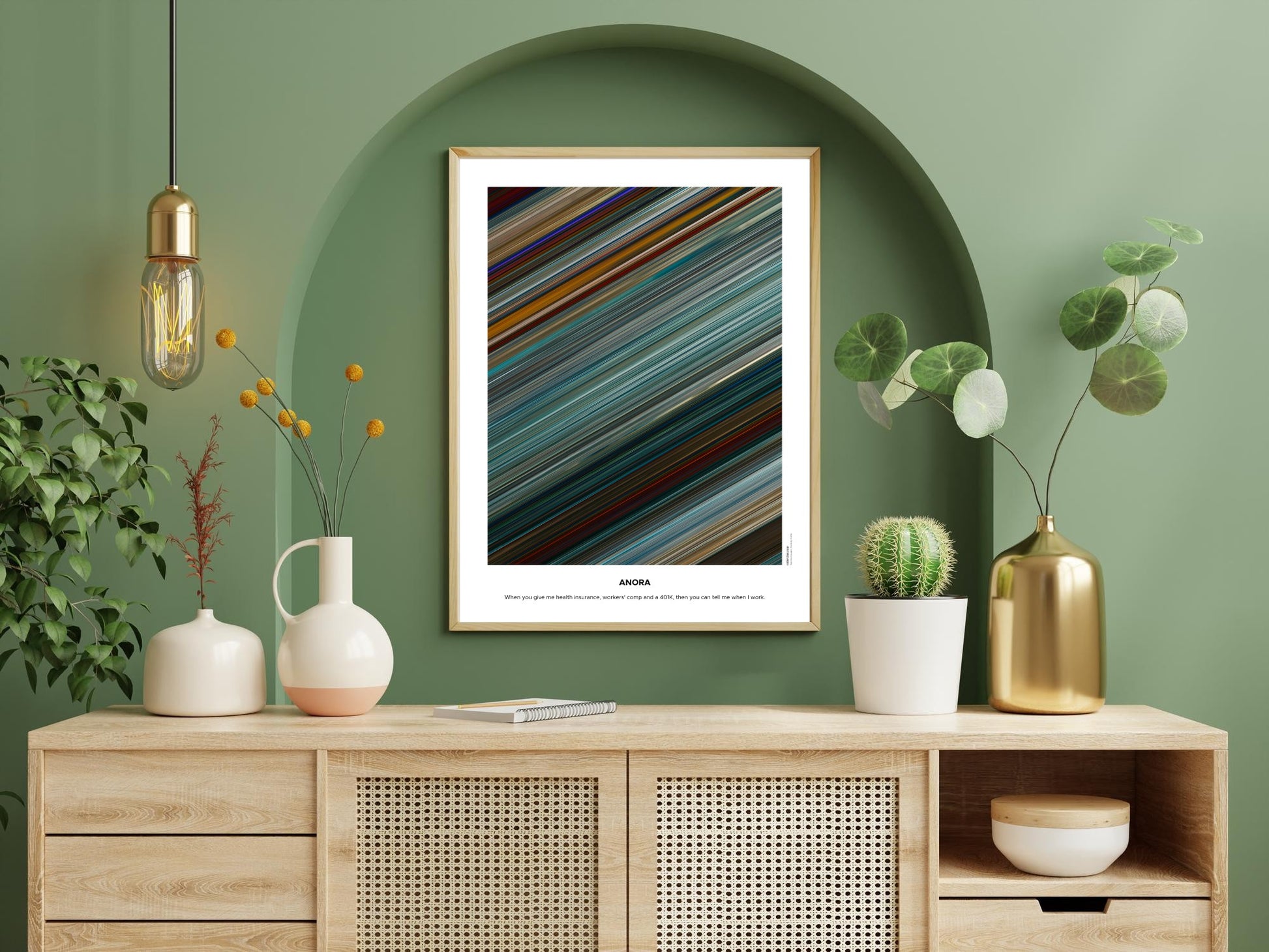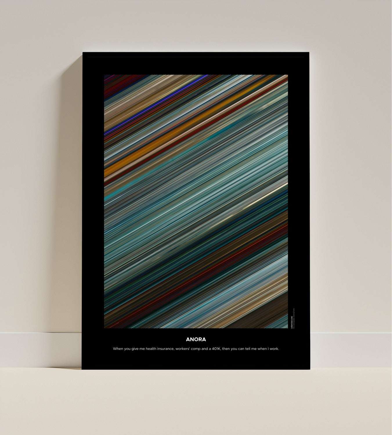Decorate your wall with this beautiful poster. Each line represents a frame of the movie or TV series episode. It's a colorful and memorable way to immortalize your favorite films or TV series.