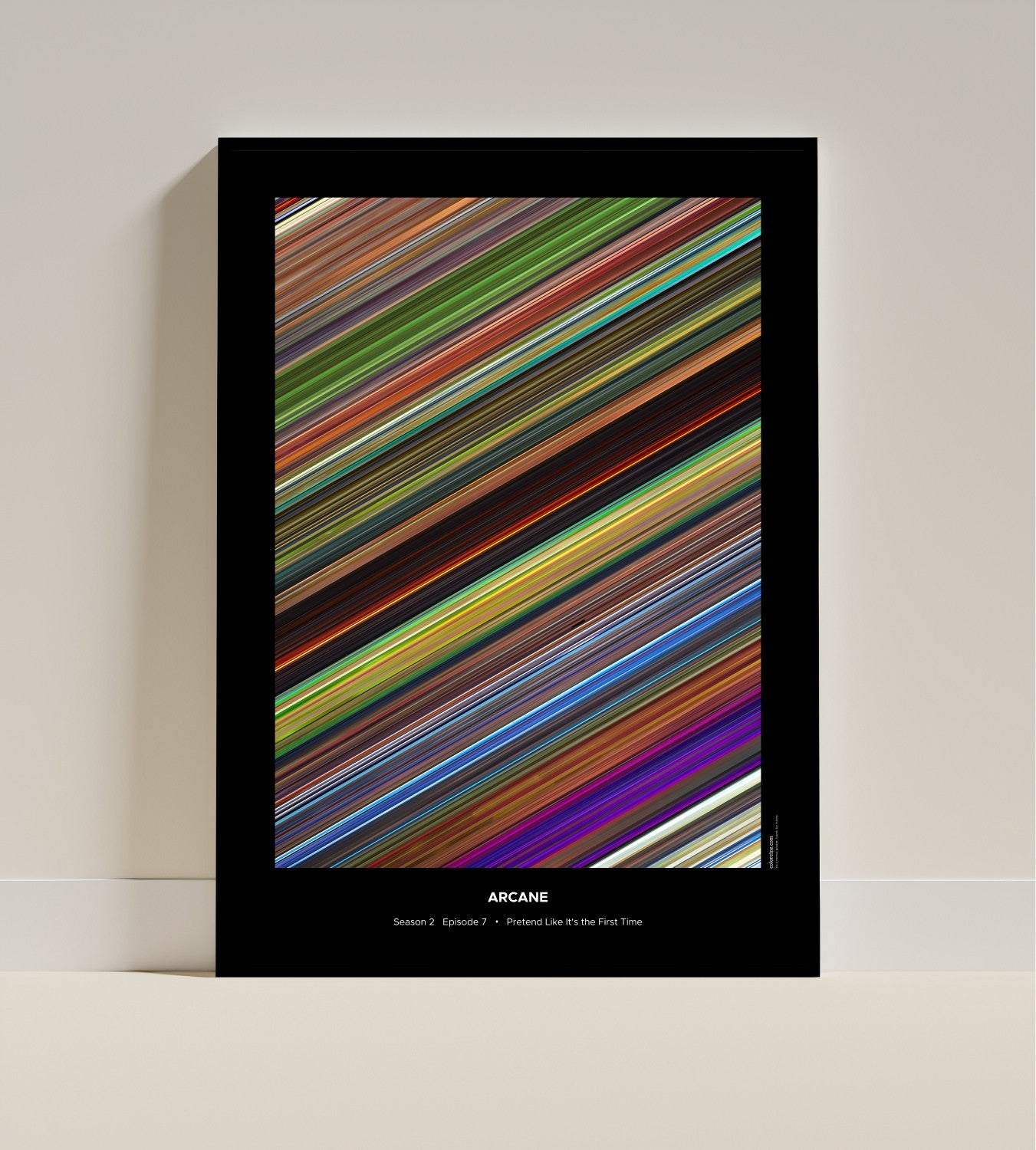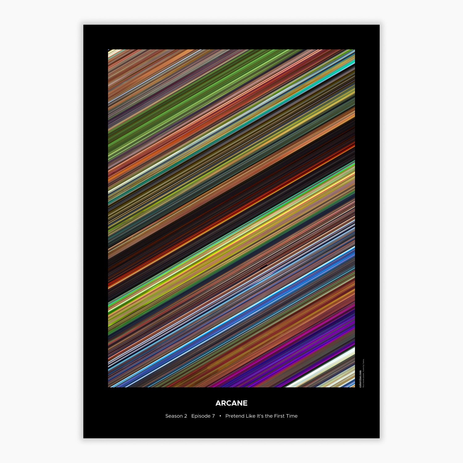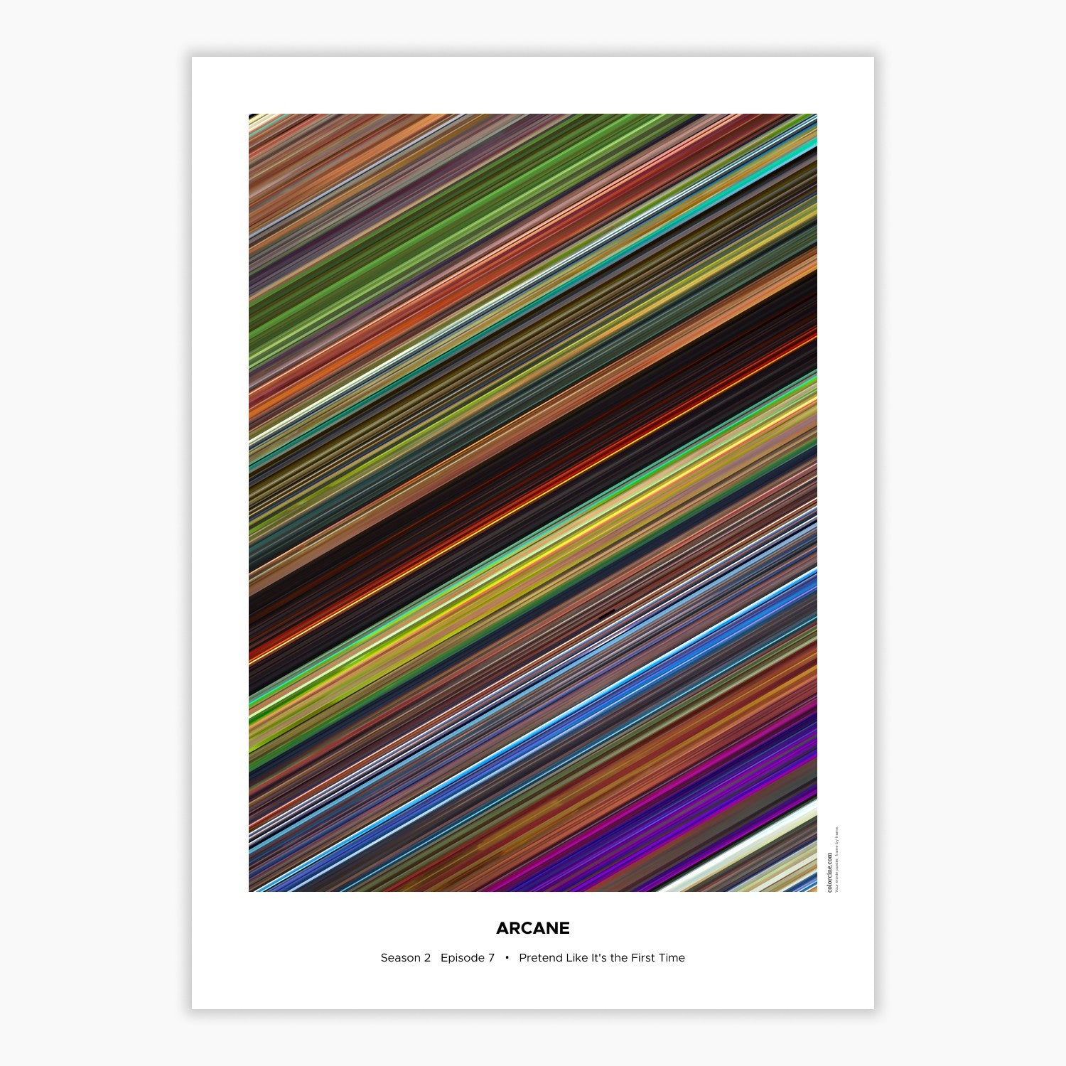 Decorate your wall with this beautiful poster. Each line represents a frame of the movie or TV series episode. It's a colorful and memorable way to immortalize your favorite films or TV series.