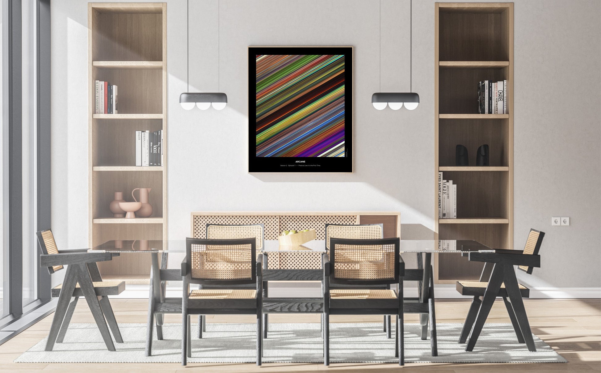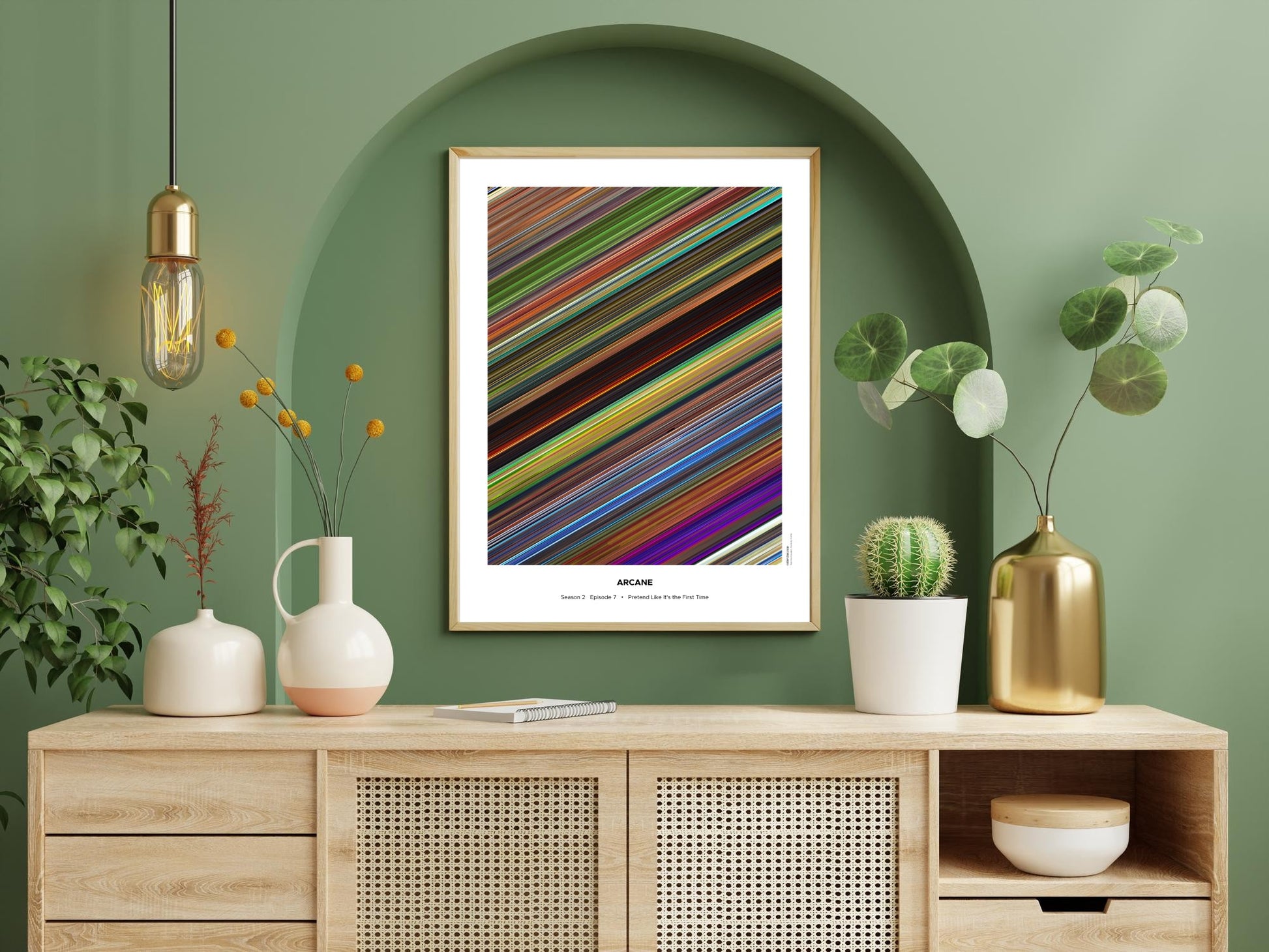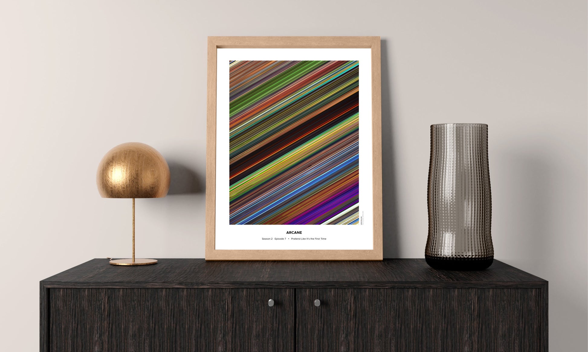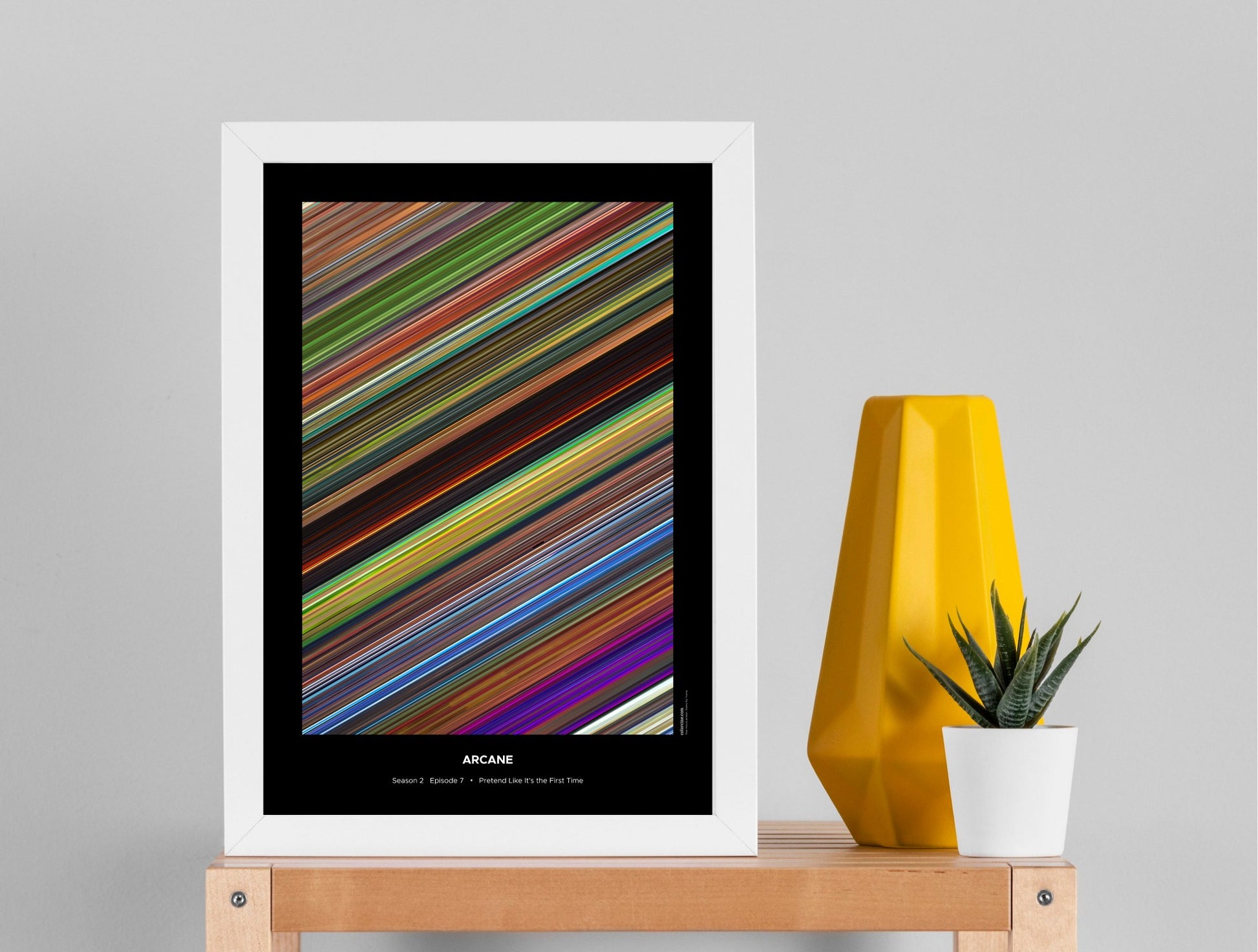 Decorate your wall with this beautiful poster. Each line represents a frame of the movie or TV series episode. It's a colorful and memorable way to immortalize your favorite films or TV series.