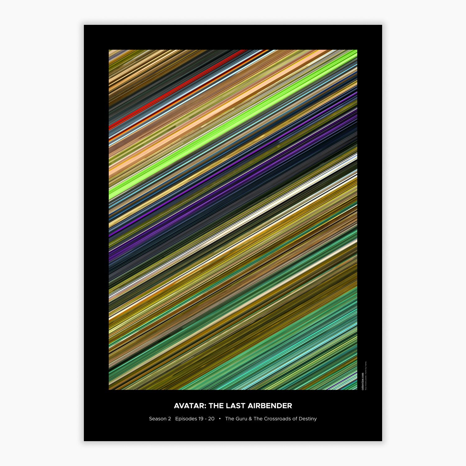 Decorate your wall with this beautiful poster. Each line represents a frame of the movie or TV series episode. It's a colorful and memorable way to immortalize your favorite films or TV series.
