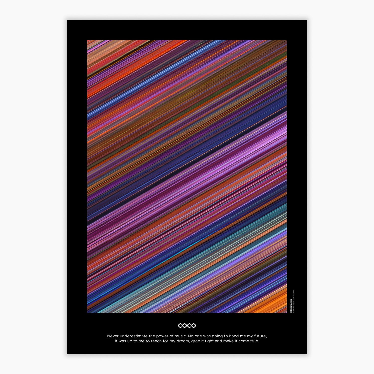 Decorate your wall with this beautiful poster. Each line represents a frame of the movie or TV series episode. It's a colorful and memorable way to immortalize your favorite films or TV series.