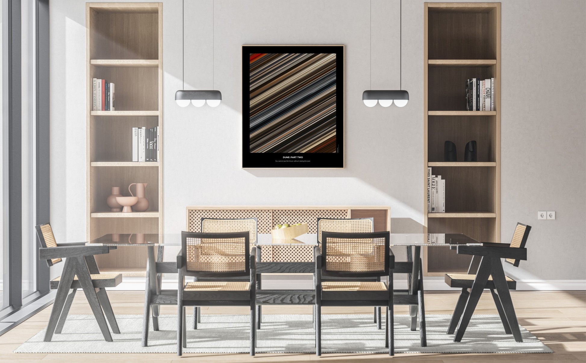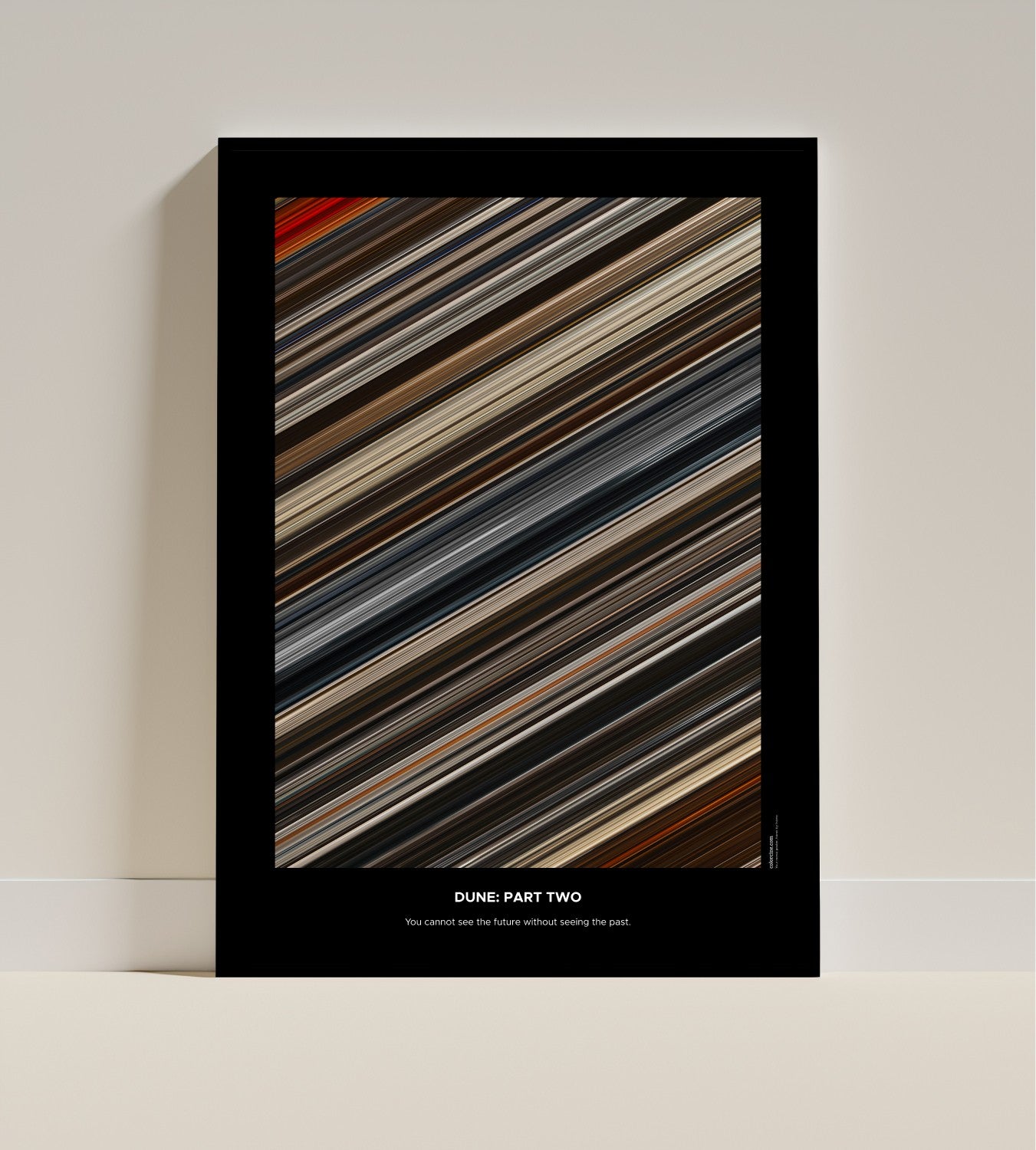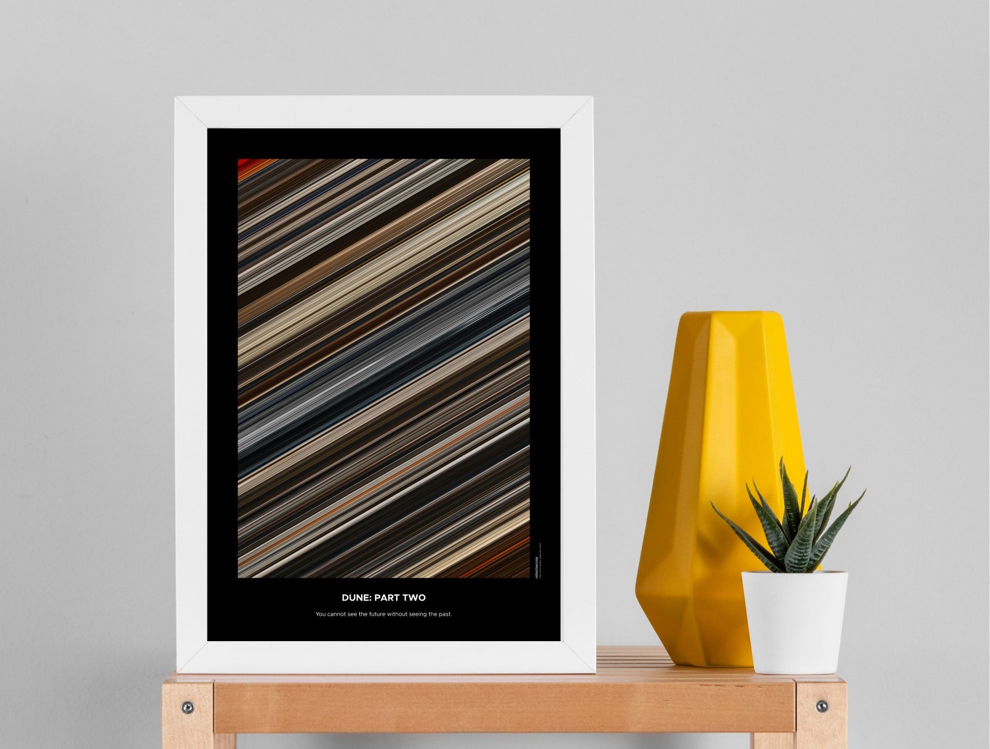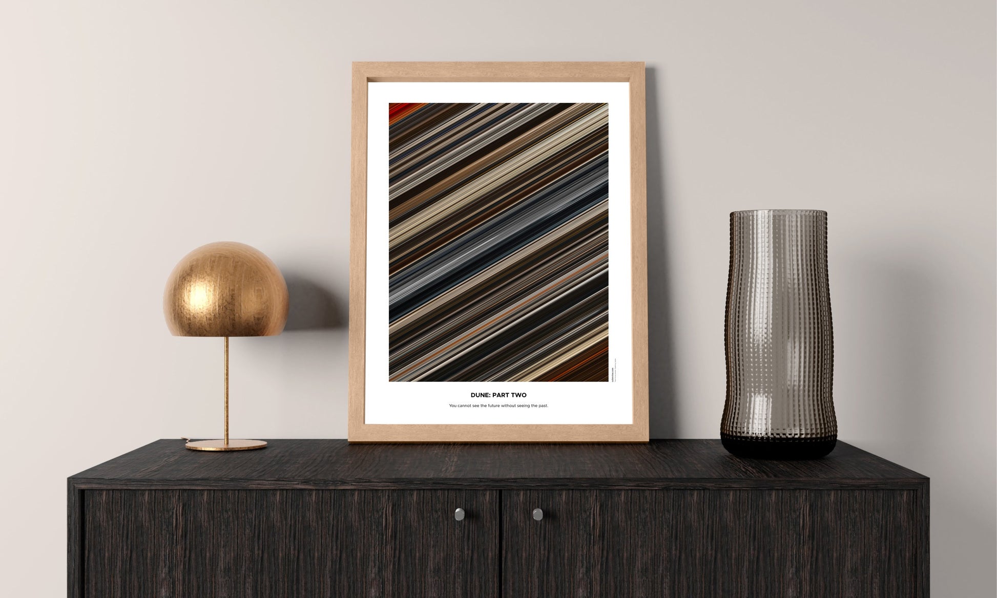 Decorate your wall with this beautiful poster. Each line represents a frame of the movie or TV series episode. It's a colorful and memorable way to immortalize your favorite films or TV series.