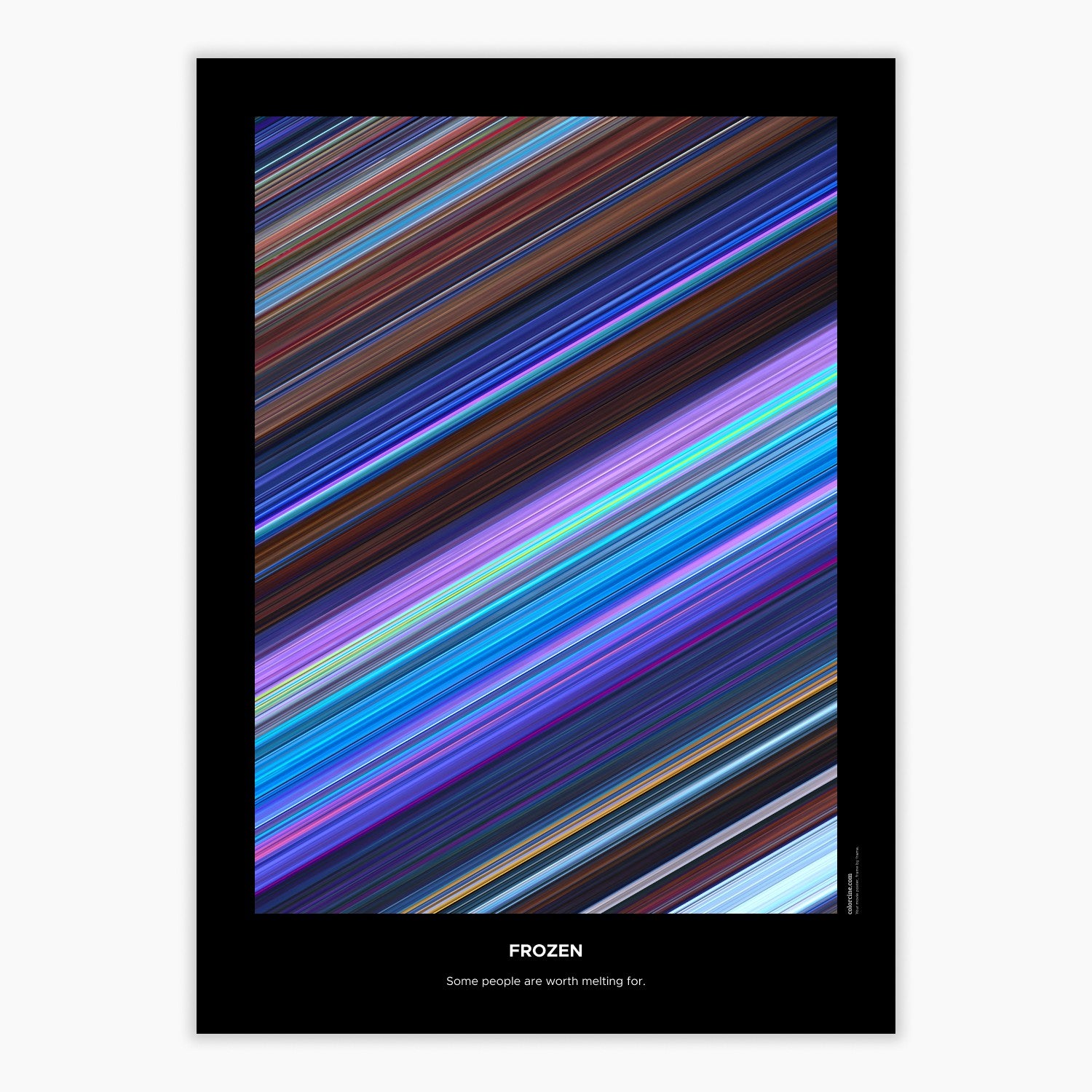 Decorate your wall with this beautiful poster. Each line represents a frame of the movie or TV series episode. It's a colorful and memorable way to immortalize your favorite films or TV series.