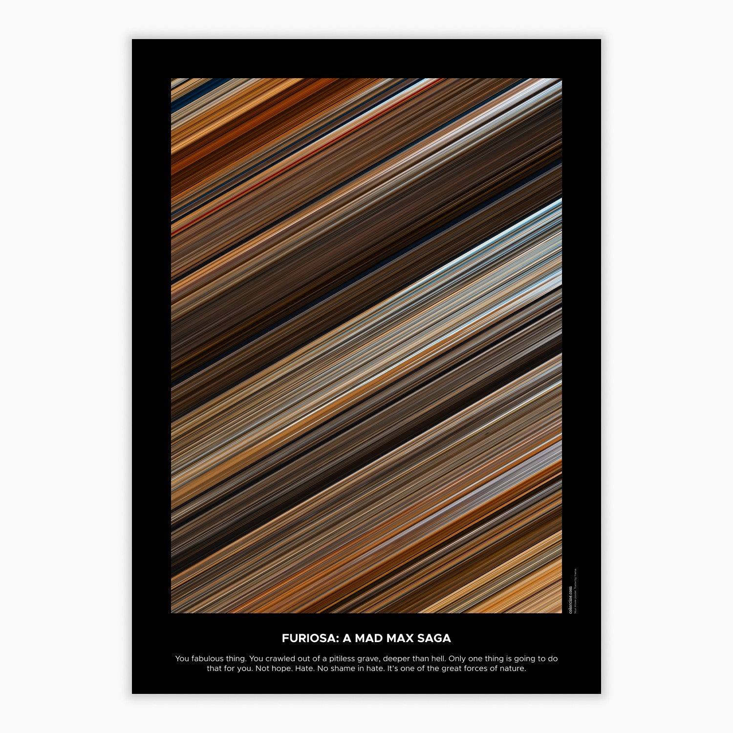 Decorate your wall with this beautiful poster. Each line represents a frame of the movie or TV series episode. It's a colorful and memorable way to immortalize your favorite films or TV series.