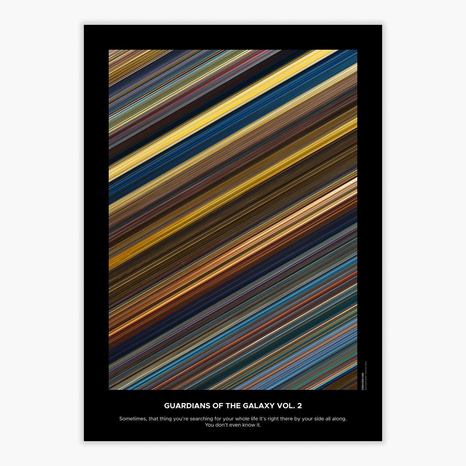 Decorate your wall with this beautiful poster. Each line represents a frame of the movie or TV series episode. It's a colorful and memorable way to immortalize your favorite films or TV series.