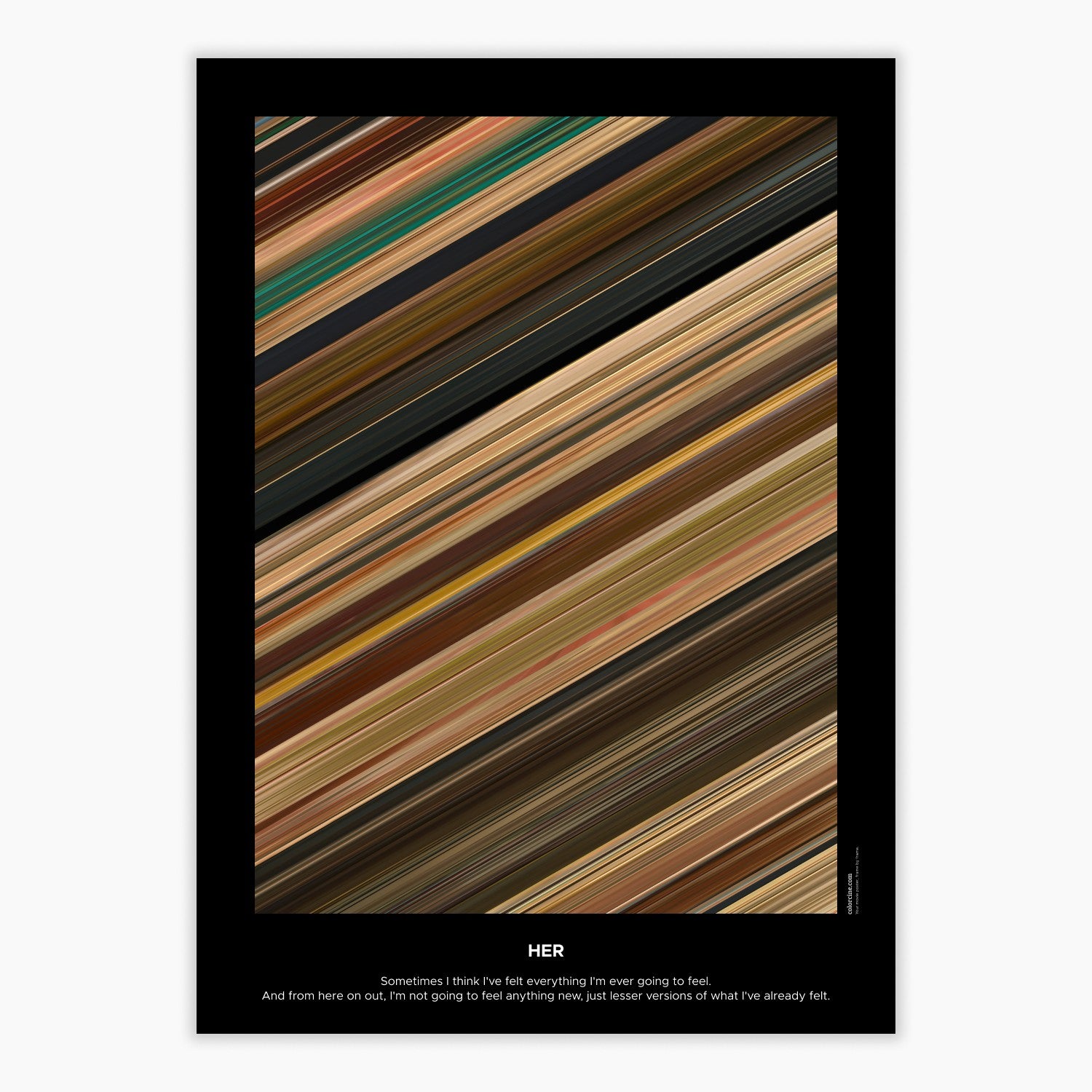 Decorate your wall with this beautiful poster. Each line represents a frame of the movie or TV series episode. It's a colorful and memorable way to immortalize your favorite films or TV series.