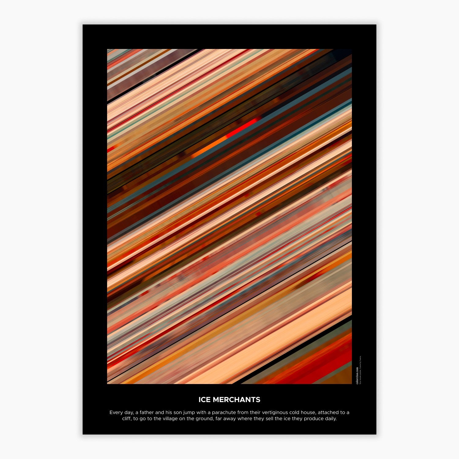 Decorate your wall with this beautiful poster. Each line represents a frame of the movie or TV series episode. It's a colorful and memorable way to immortalize your favorite films or TV series.