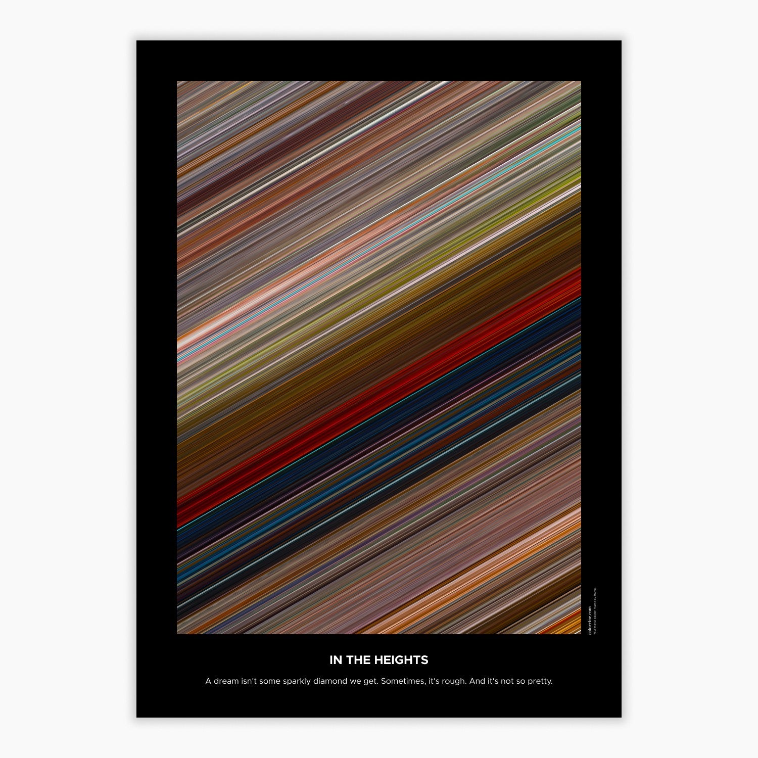 Decorate your wall with this beautiful poster. Each line represents a frame of the movie or TV series episode. It's a colorful and memorable way to immortalize your favorite films or TV series.