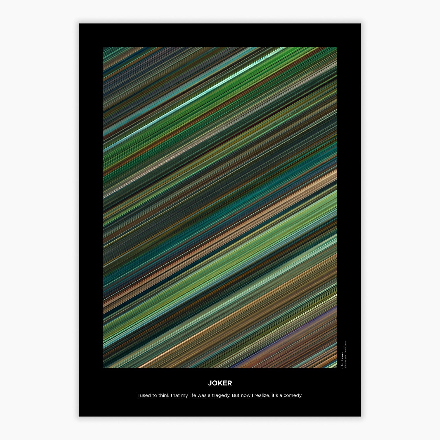 Decorate your wall with this beautiful poster. Each line represents a frame of the movie or TV series episode. It's a colorful and memorable way to immortalize your favorite films or TV series.