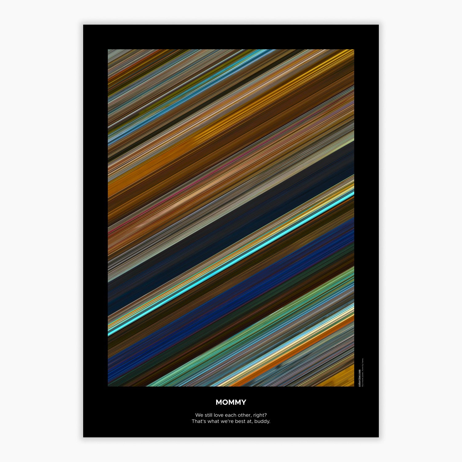 Decorate your wall with this beautiful poster. Each line represents a frame of the movie or TV series episode. It's a colorful and memorable way to immortalize your favorite films or TV series.