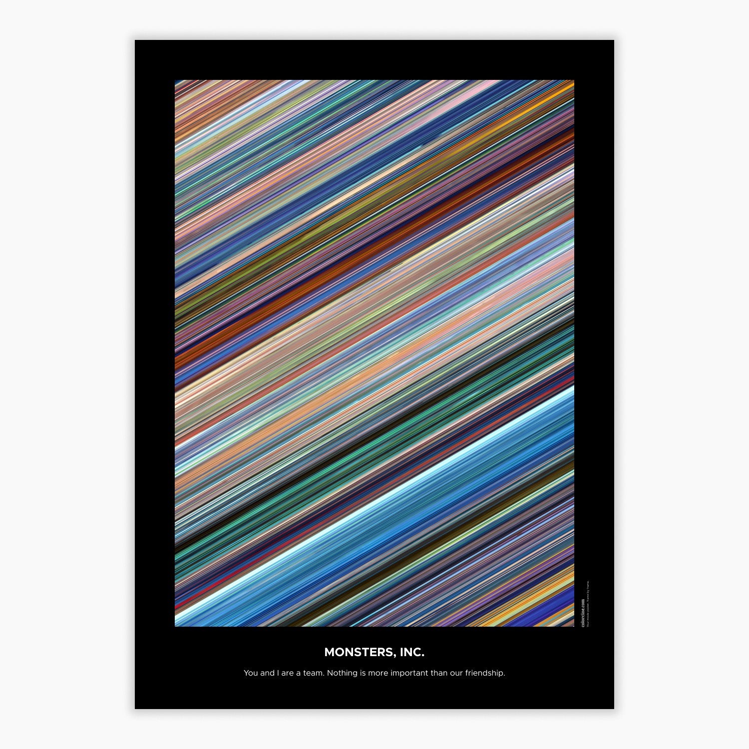 Decorate your wall with this beautiful poster. Each line represents a frame of the movie or TV series episode. It's a colorful and memorable way to immortalize your favorite films or TV series.