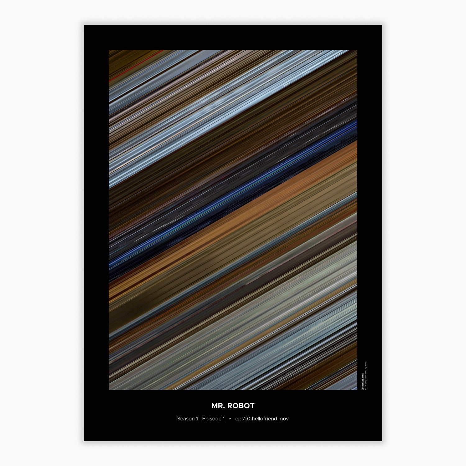 Decorate your wall with this beautiful poster. Each line represents a frame of the movie or TV series episode. It's a colorful and memorable way to immortalize your favorite films or TV series.