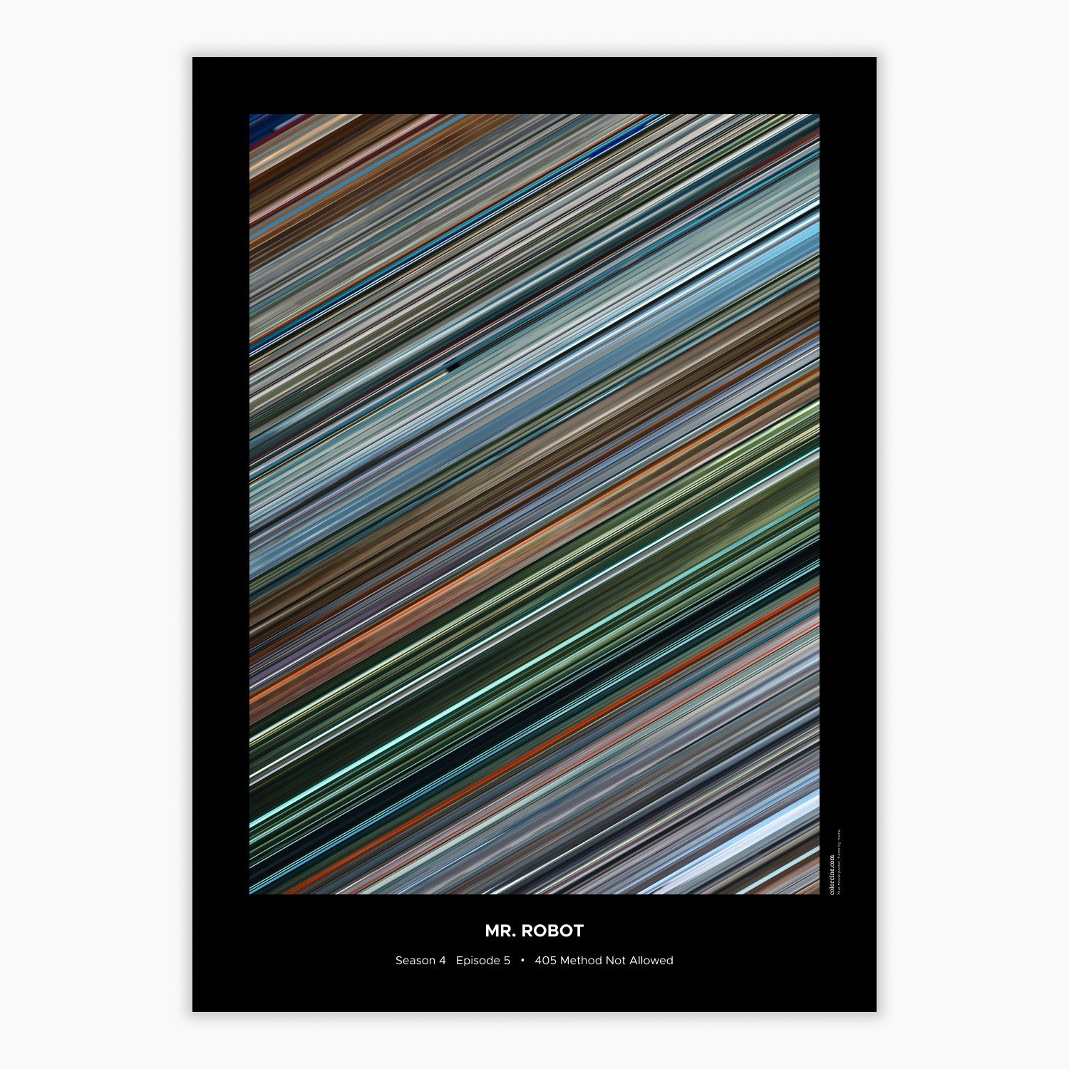 Decorate your wall with this beautiful poster. Each line represents a frame of the movie or TV series episode. It's a colorful and memorable way to immortalize your favorite films or TV series.