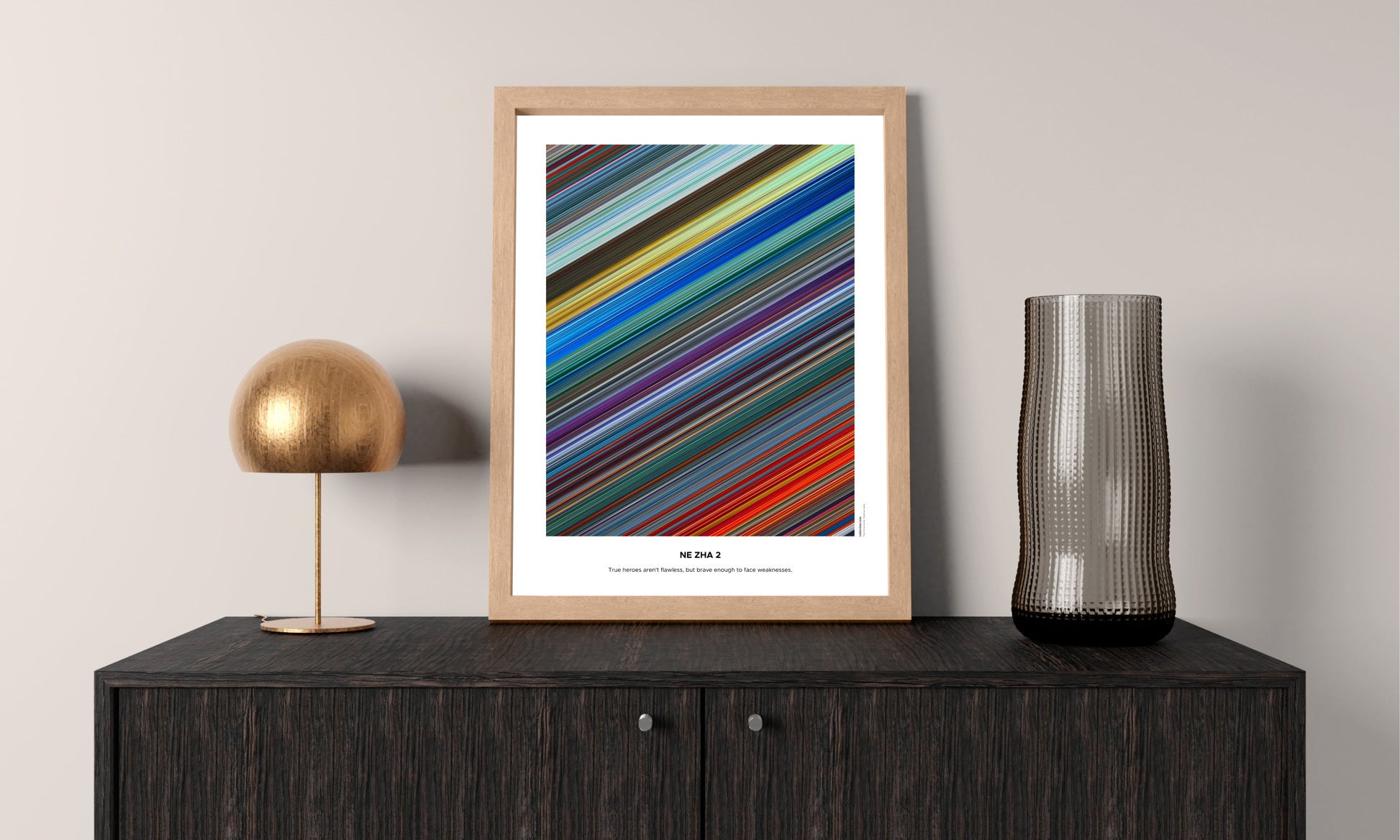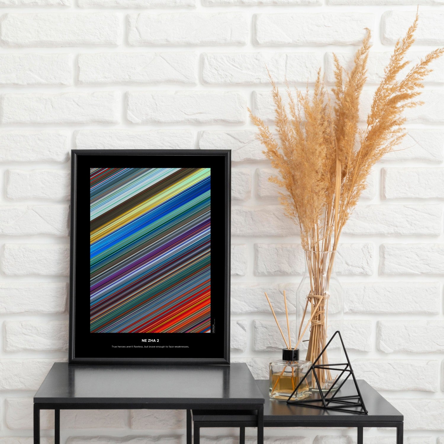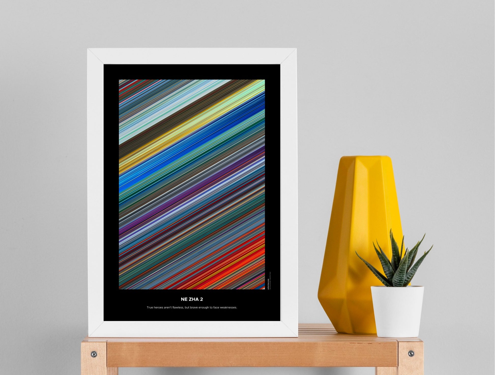 Decorate your wall with this beautiful poster. Each line represents a frame of the movie or TV series episode. It's a colorful and memorable way to immortalize your favorite films or TV series.