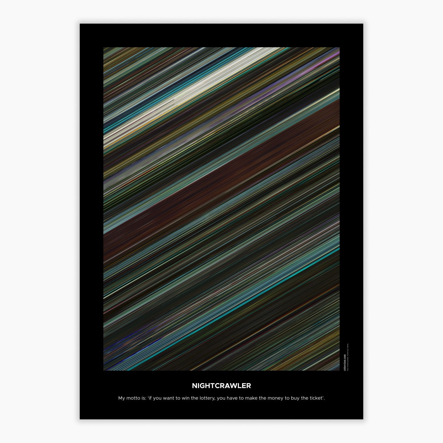 Decorate your wall with this beautiful poster. Each line represents a frame of the movie or TV series episode. It's a colorful and memorable way to immortalize your favorite films or TV series.