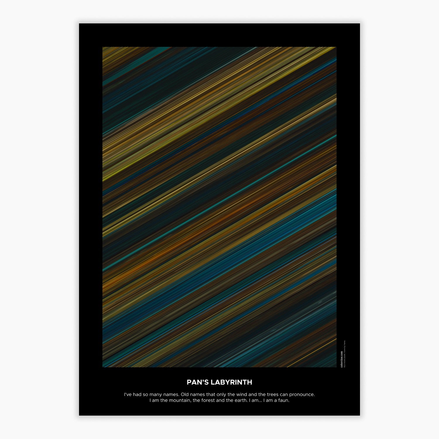 Decorate your wall with this beautiful poster. Each line represents a frame of the movie or TV series episode. It's a colorful and memorable way to immortalize your favorite films or TV series.