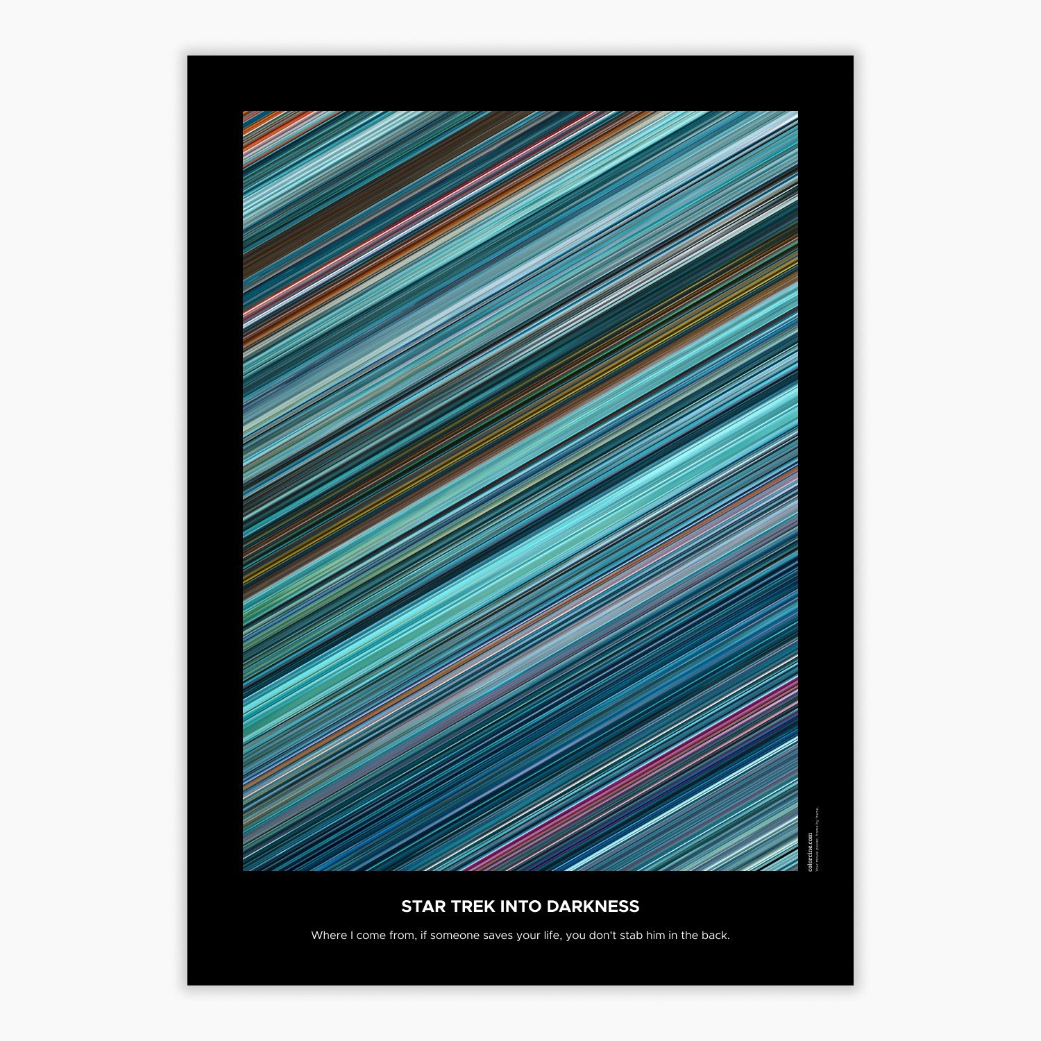 Decorate your wall with this beautiful poster. Each line represents a frame of the movie or TV series episode. It's a colorful and memorable way to immortalize your favorite films or TV series.