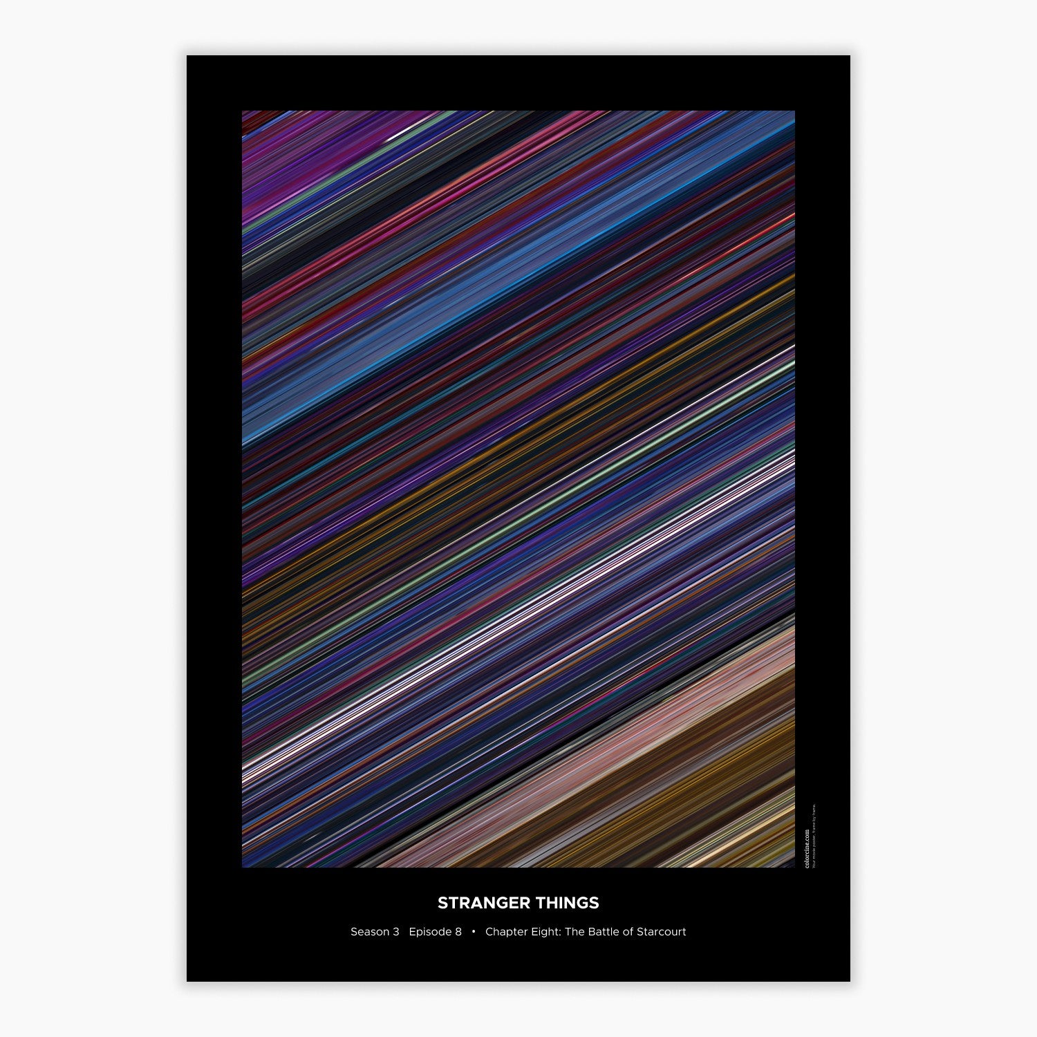 Decorate your wall with this beautiful poster. Each line represents a frame of the movie or TV series episode. It's a colorful and memorable way to immortalize your favorite films or TV series.
