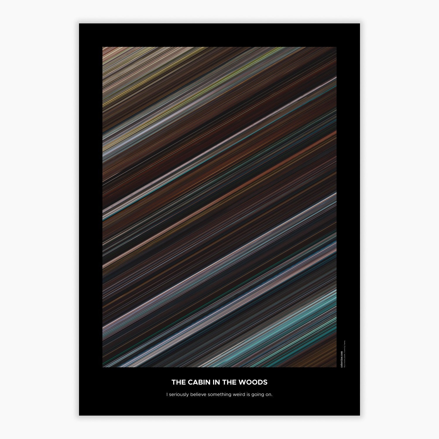 Decorate your wall with this beautiful poster. Each line represents a frame of the movie or TV series episode. It's a colorful and memorable way to immortalize your favorite films or TV series.