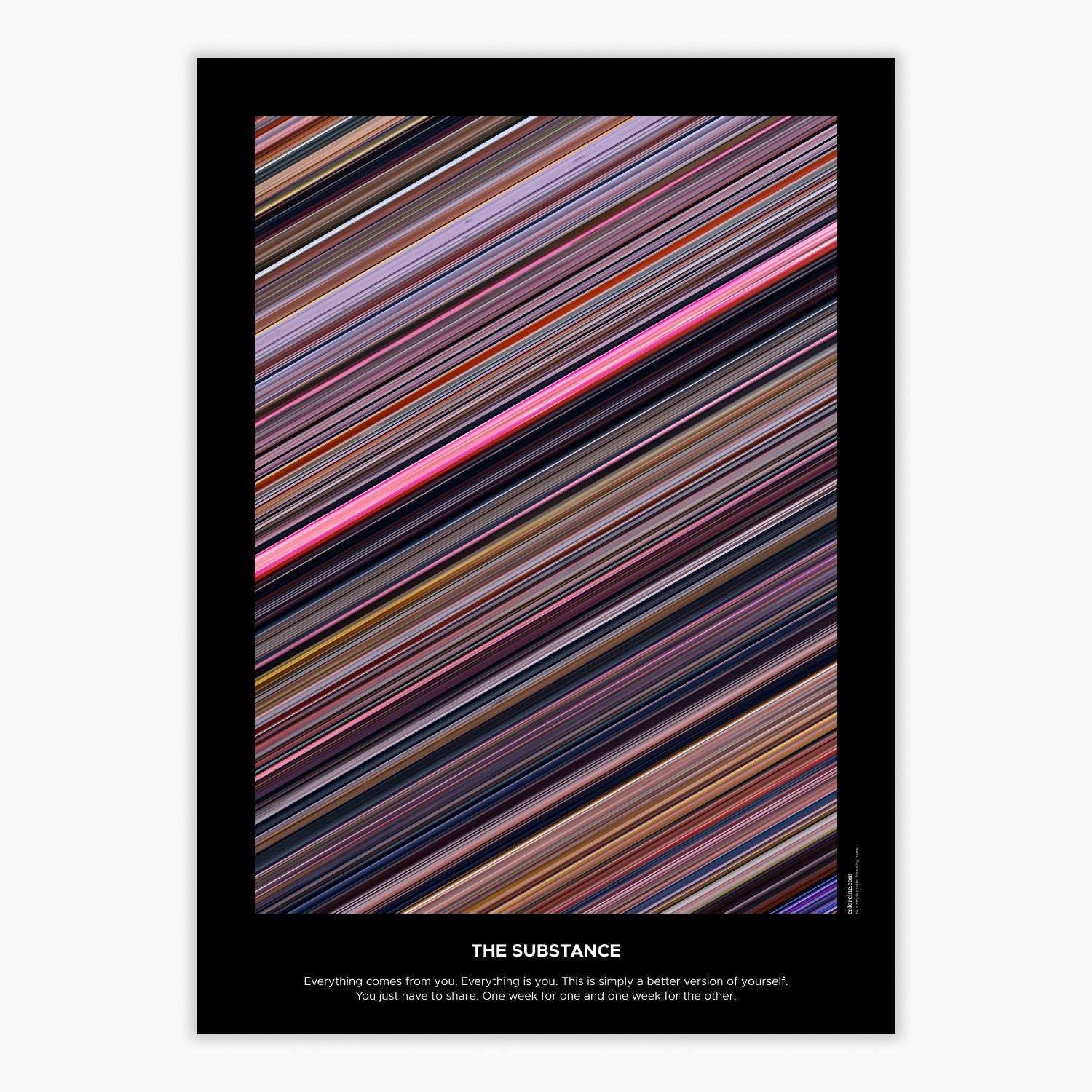 Decorate your wall with this beautiful poster. Each line represents a frame of the movie or TV series episode. It's a colorful and memorable way to immortalize your favorite films or TV series.