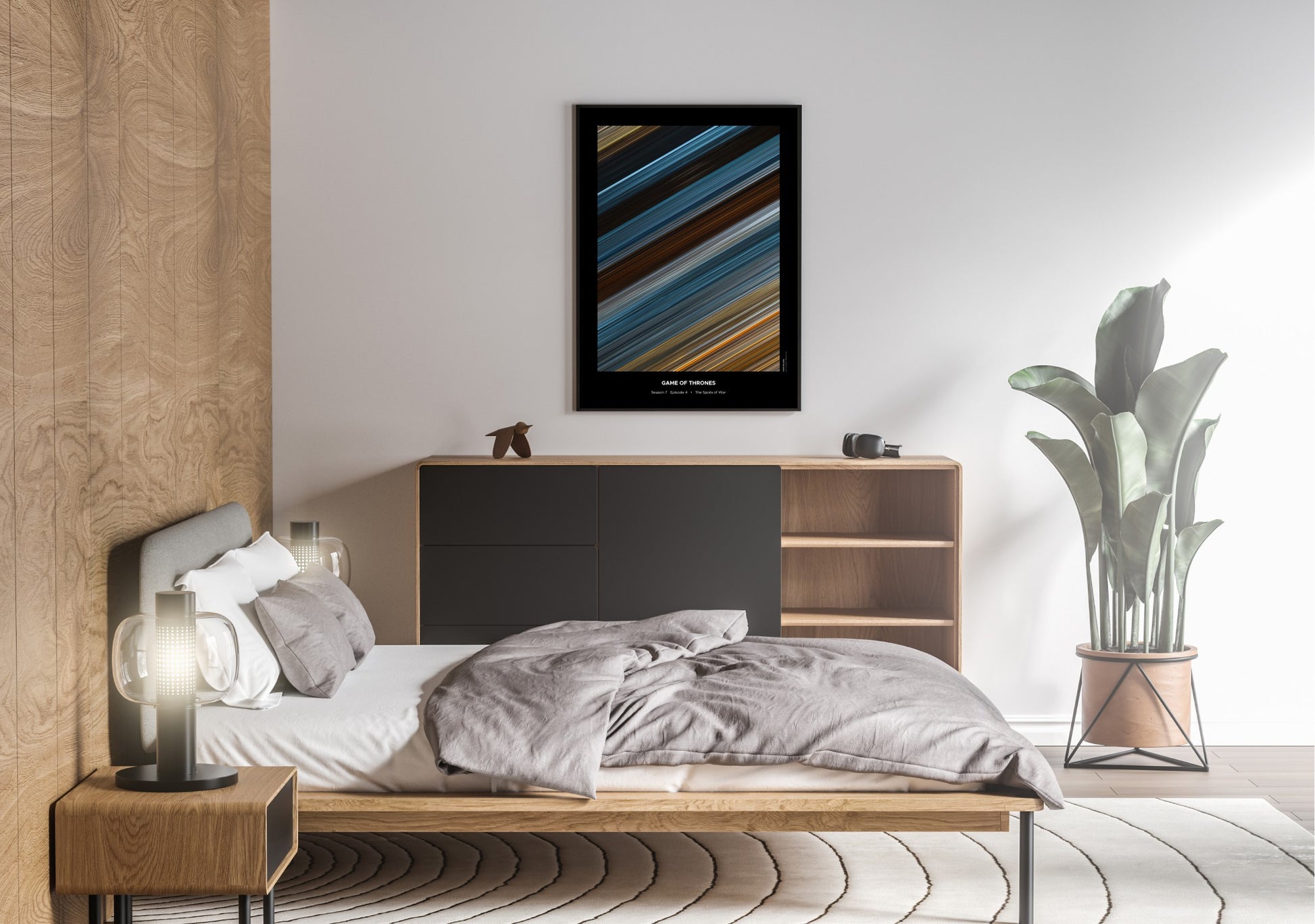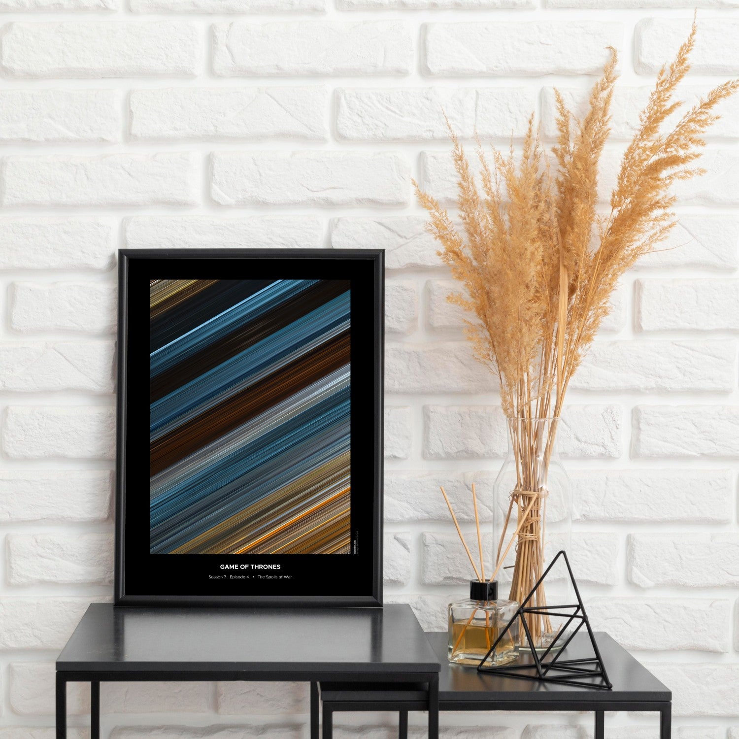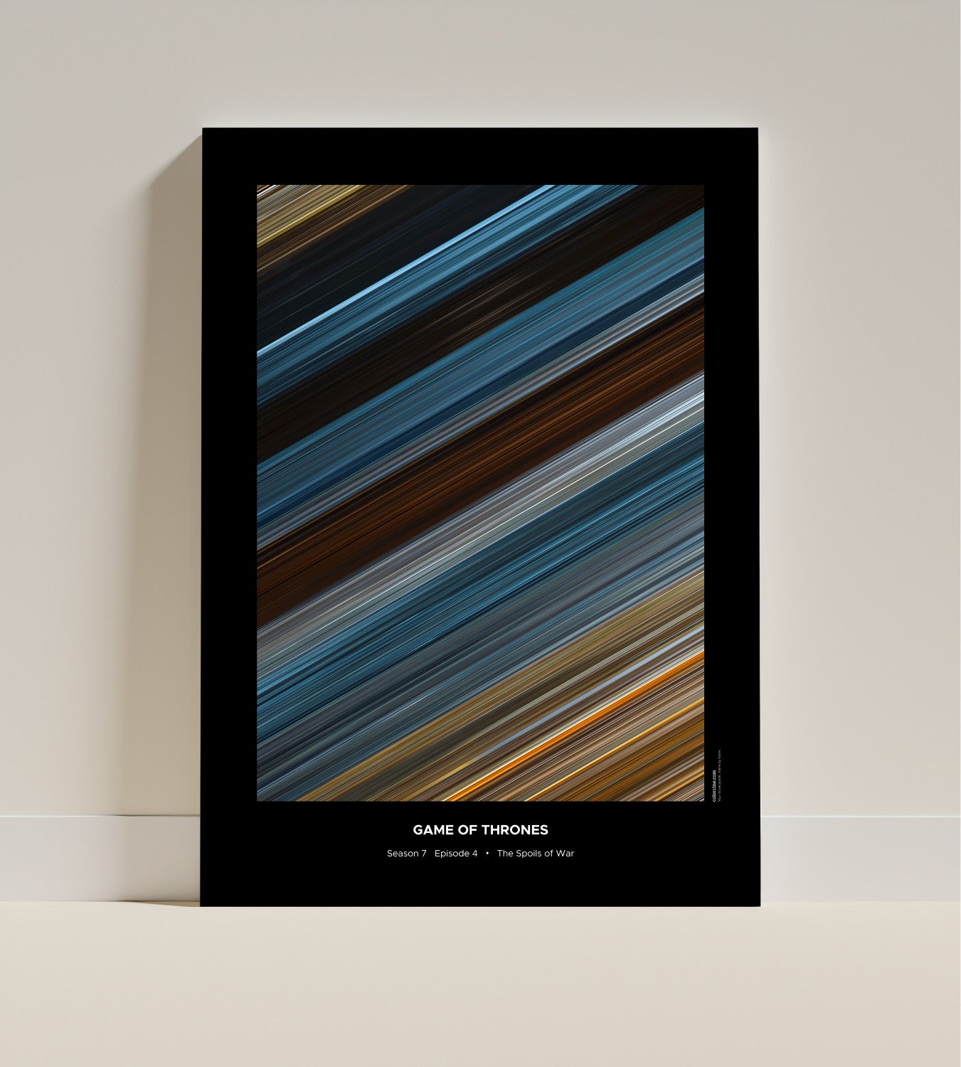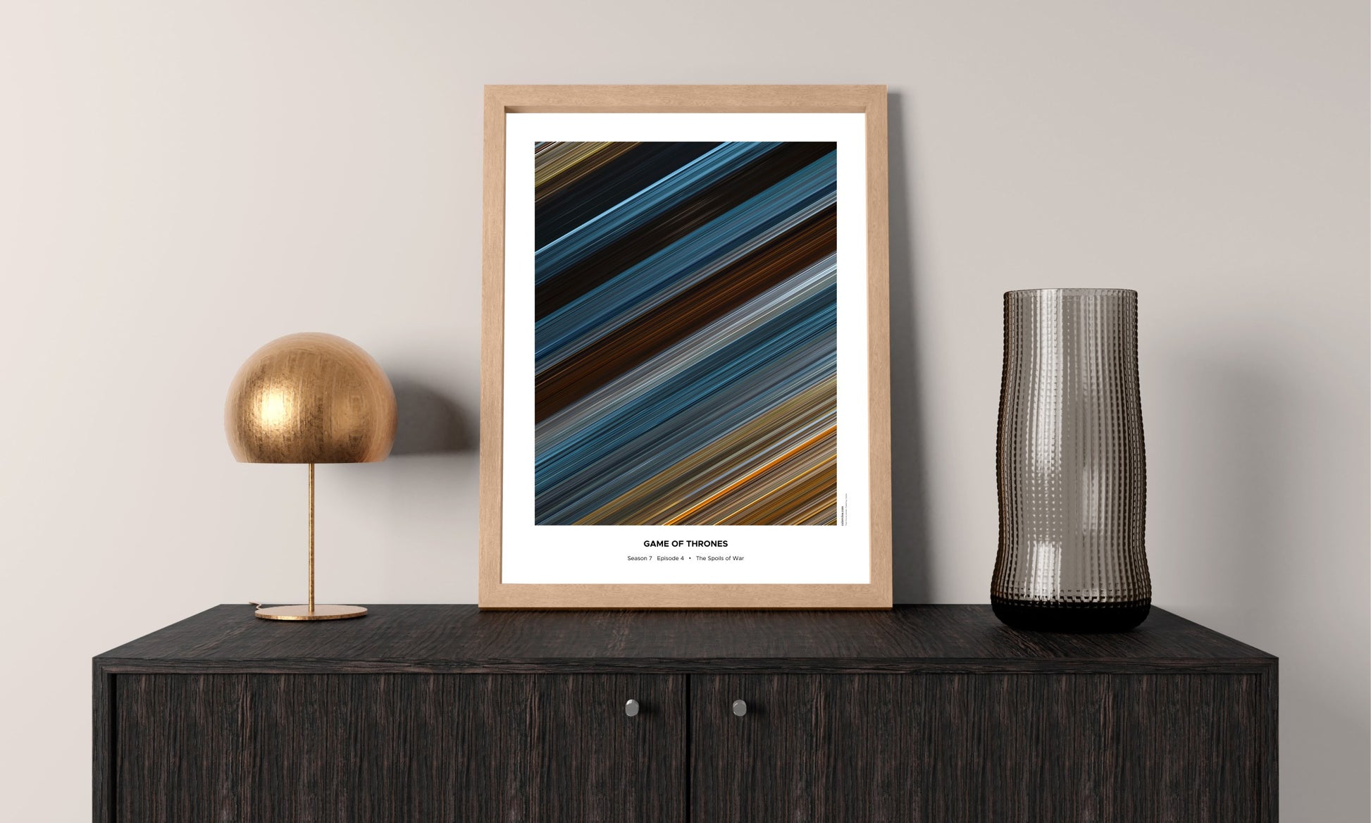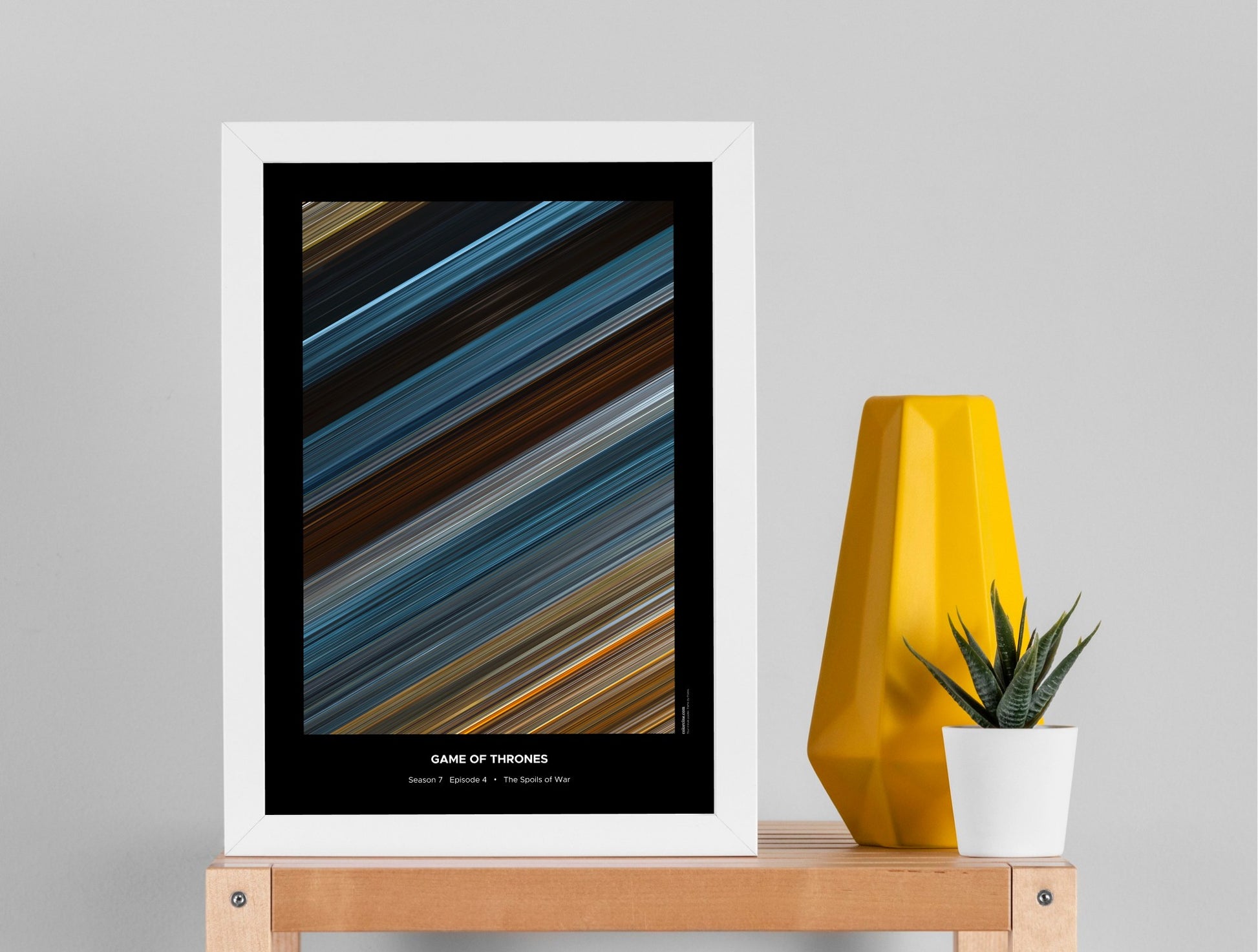 Decora a tua parede com este póster elegante. Cada uma das linhas representa uma frame do filme ou do episódio da série de TV. É uma forma colorida e memorável de imortalizares os teus filmes ou séries de TV favoritos.