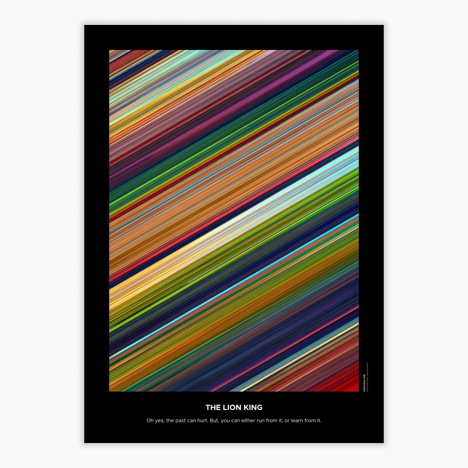 Decora a tua parede com este póster elegante. Cada uma das linhas representa uma frame do filme ou do episódio da série de TV. É uma forma colorida e memorável de imortalizares os teus filmes ou séries de TV favoritos.