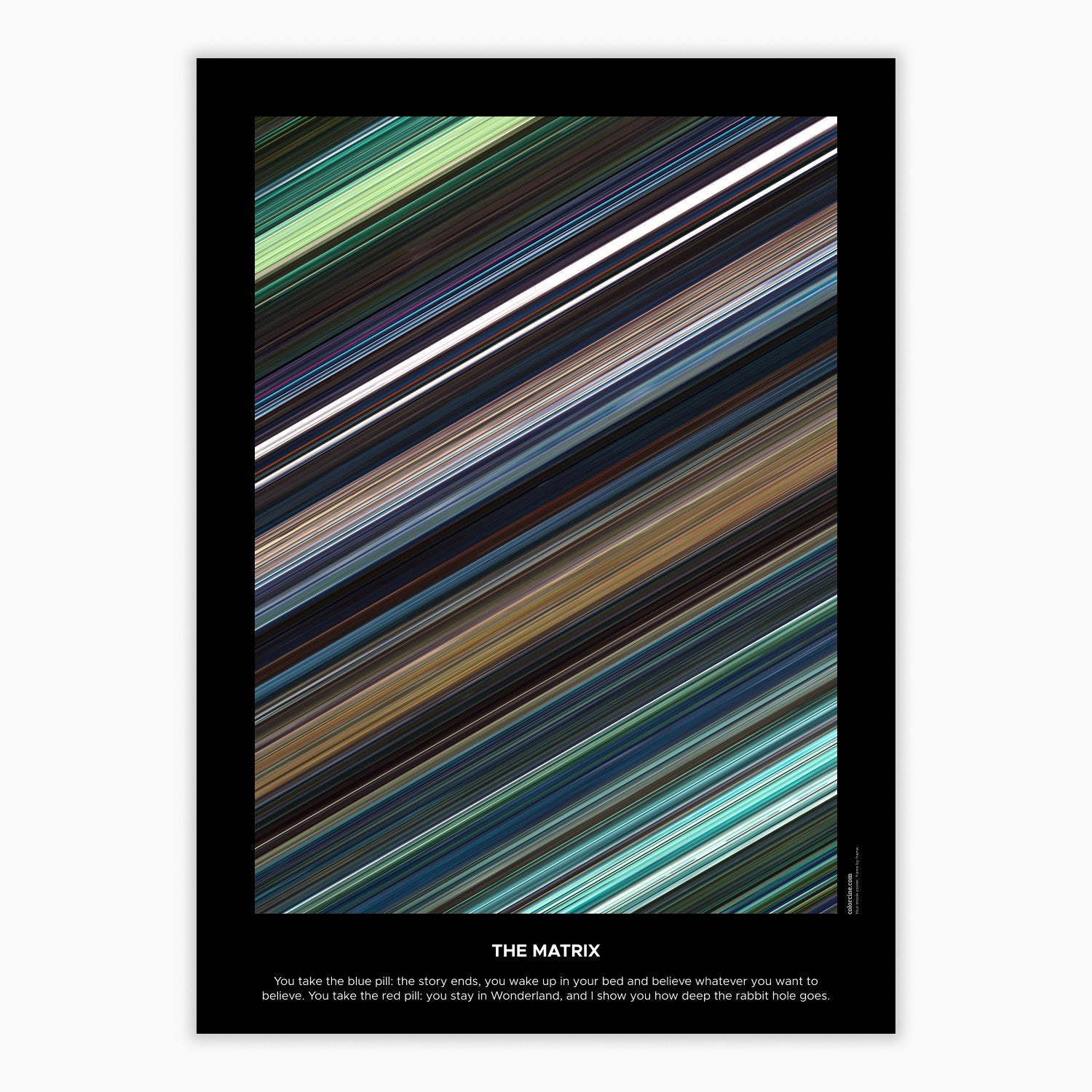Decora a tua parede com este póster elegante. Cada uma das linhas representa uma frame do filme ou do episódio da série de TV. É uma forma colorida e memorável de imortalizares os teus filmes ou séries de TV favoritos.